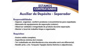 AcessarEmpresa abre vagas para Auxiliar de Depósito – Separador – Salário: R$ 1.825,00